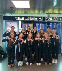 Sunnuntaina tusina iloisia nuoria hyppäsi lentokoneeseen ja siirtyi ilmojen halki Rovsniemelle toiseen osaotteluun. Ennen peliä tytöt piipahtavat yhteiskuvassa myös itse joulupukin kanssa.